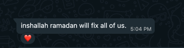 Ameen, may Ramadan fix us all. It comes when we most need it, a reset and reconfiguration of priorities. Loved how you weaved so many different threads and conversations together in this one piece. I hope you find renewed resolve and hope in the work that you do, too